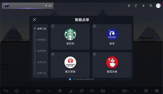 另外,也新增车生活Agent智能点单功能,支持语音直接下单瑞幸、星巴克、蜜雪冰城、霸王茶姬等,并集成车载刷脸支付与一键导航到门店,让消费更加便捷。