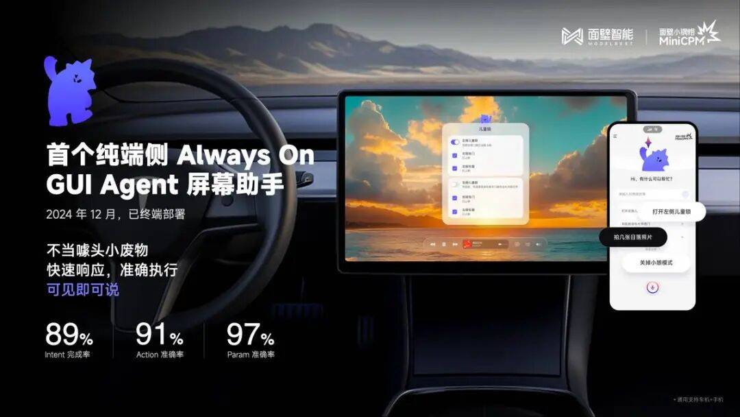 面壁智能深耕国内端侧智能领域,在汽车领域,截止目前,面壁智能的产品已经应用于长安马自达、吉利银河等车型,实现了MiniCPM系列端侧大模型在智能座舱的规模化应用。